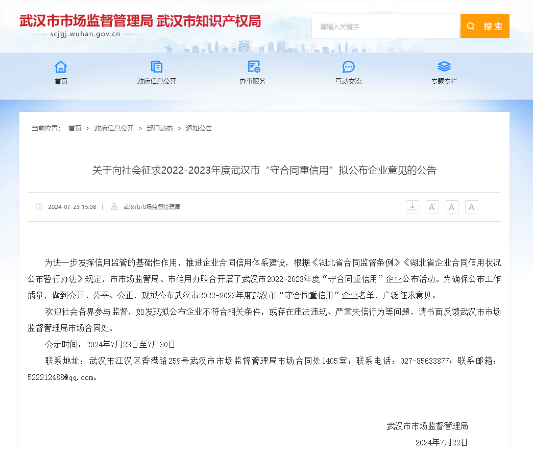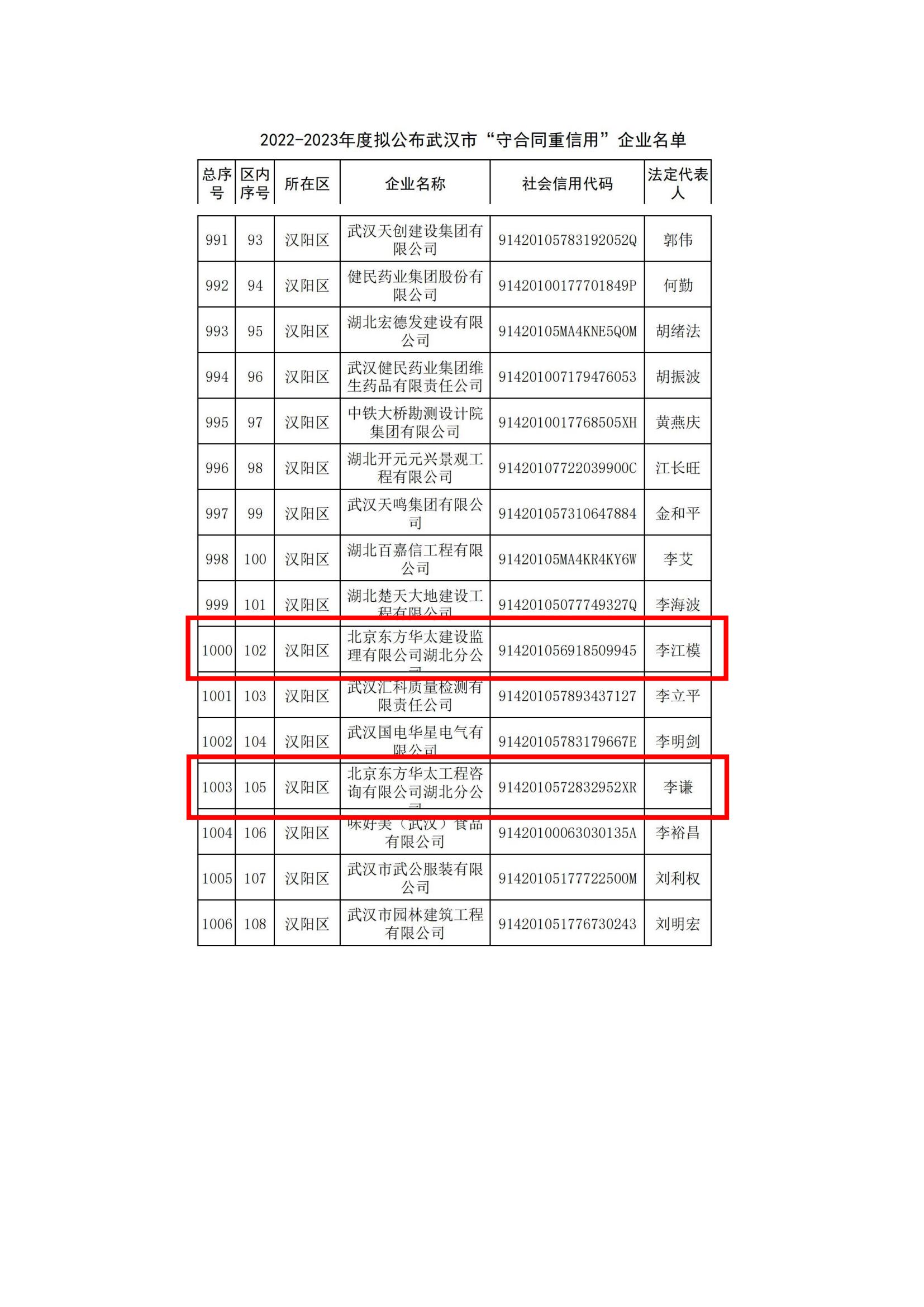 近日,武漢市市場監(jiān)督管理局、市信用辦聯(lián)合開展的“武漢市2022-2023年度‘守合同重信用’”企業(yè)名單已公布,東方華太公司憑借規(guī)范的合同管理體系和良好的社會(huì)信用,成功上榜。